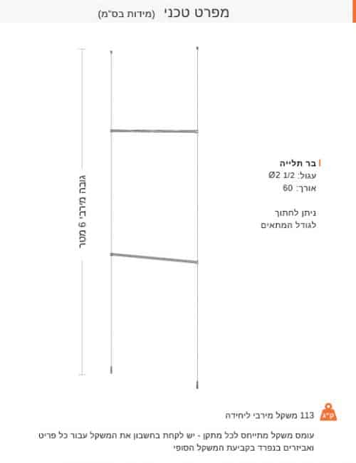 יחידת תוספת גובה מירבי 6 מטר מרווח מירבי בין מדפים 50 ס”מ התקנה: תיקרה-ריצפה, חיזוק בהצמדה לקיר